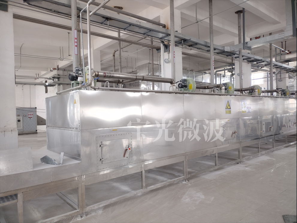 ◎ 步驟四:傳遞帶按響應物料厚度設置運行速率,將物料送入多段微波枯燥箱停止加熱,枯燥,糊精化,滅菌;多段微波枯燥箱中每段微波枯燥箱內的加熱溫度順次進步;